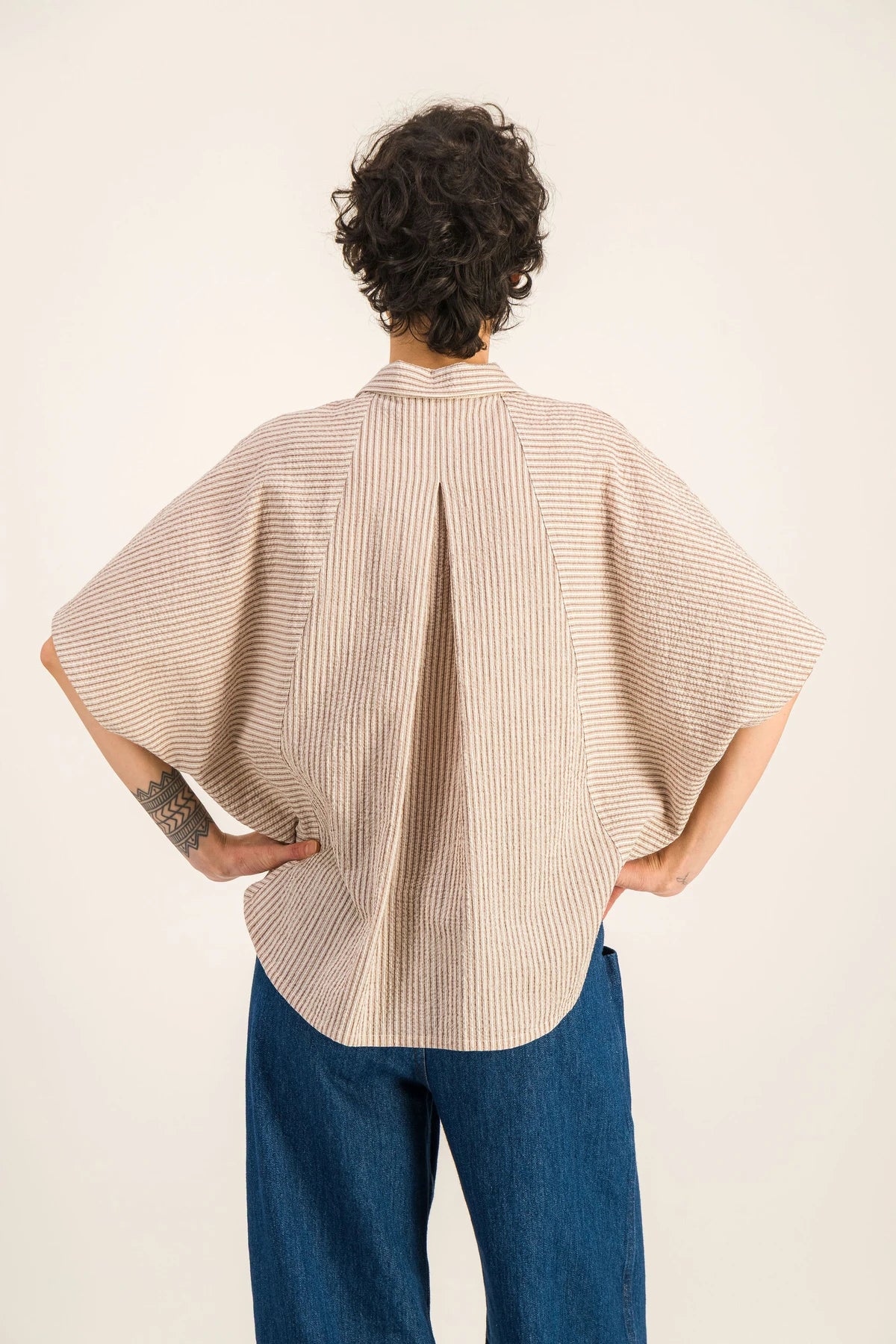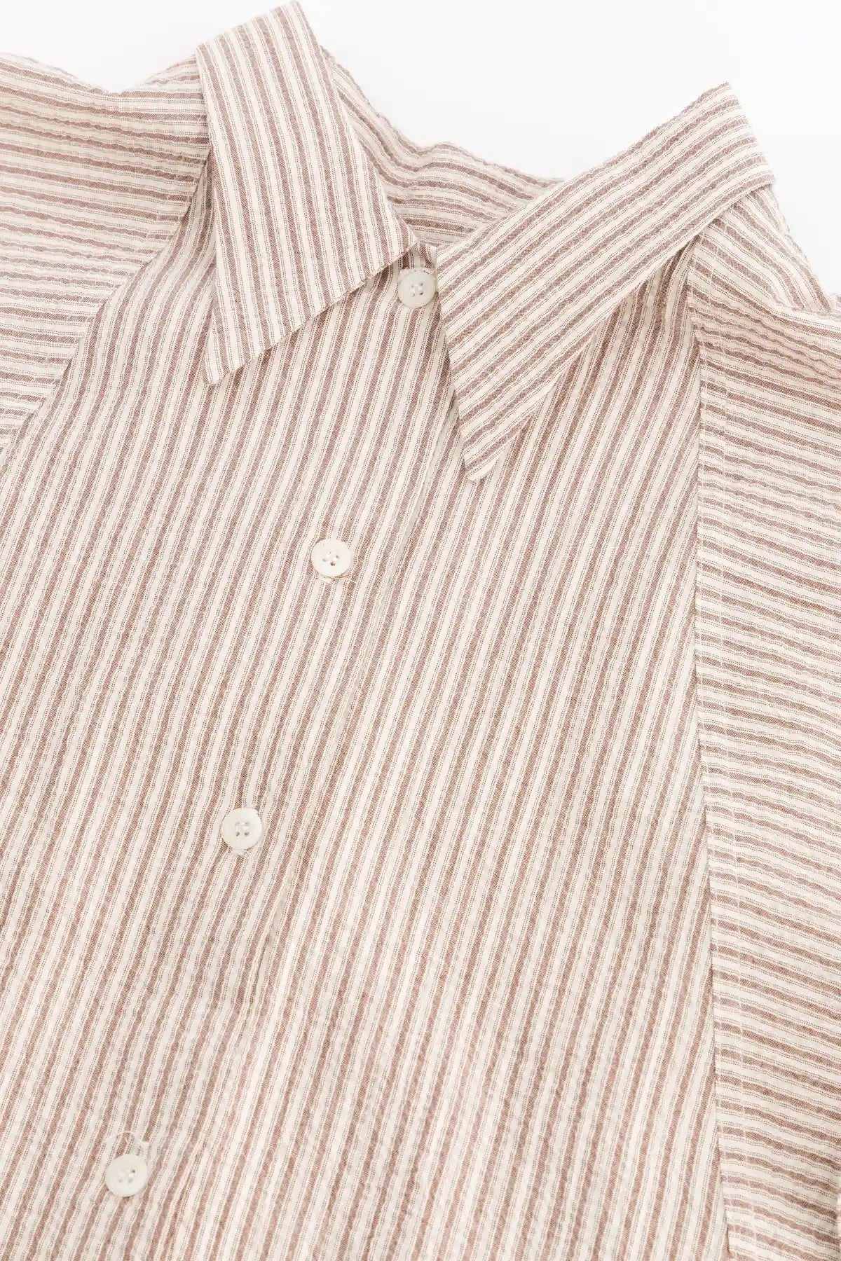 Camisa de manga corta de seersucker a rayas DONNA BEIGE | SIXSOEURS – SIXSŒURS