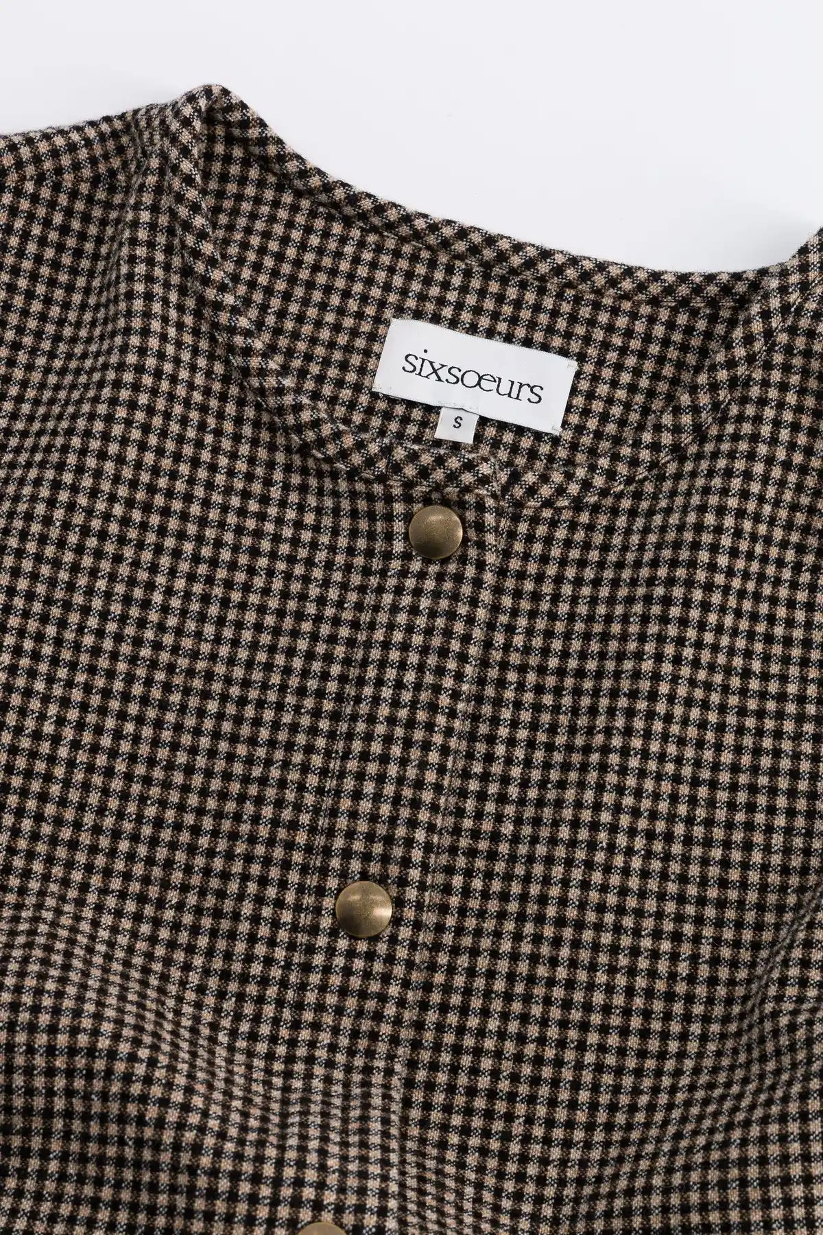 Top de lana a cuadros negros y beige.