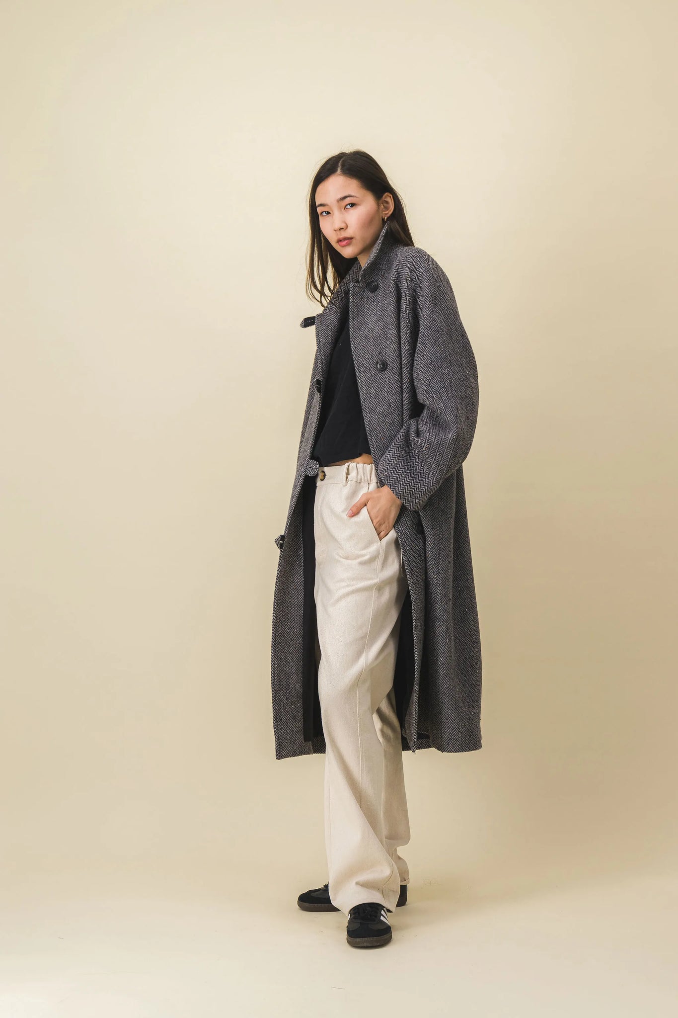 Corte estructurado y oversize, de aspecto masculino y vintage, primo del loden y el impermeable.