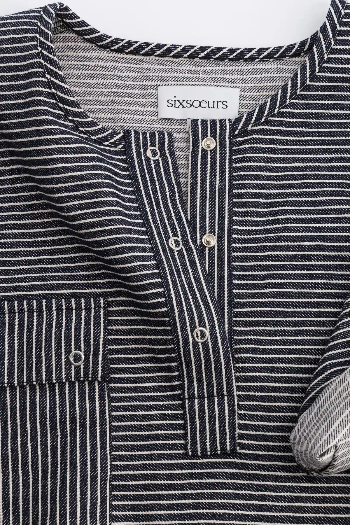 Top vaquero Oshkosh de corte holgado y cuello redondo. Se abre con una tapeta con botones a presión centrada en la parte delantera. AGATHA presenta un bolsillo de parche con solapa en el pecho izquierdo. Broches de presión metálicos niquelados.